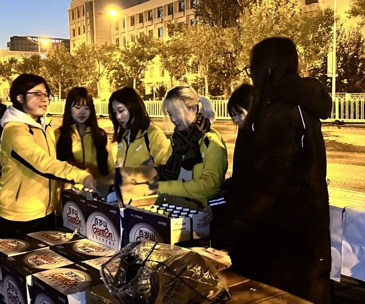 完赛区内,他们手递物资、微笑祝福,让完赛喜悦更添温暖;