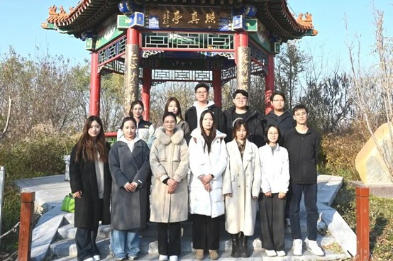 合影之后,交流团队转场至天津中医药大学,来到学校标志性景观——如意药岭(药山)参观体验。在药植园中,大家认识了多种药用植物,了解了它们的生长特性和药用价值。登高望远,整个园区尽收眼底,不仅让大家领略了中医药文化的博大精深,也为后续的参观活动做好了铺垫。