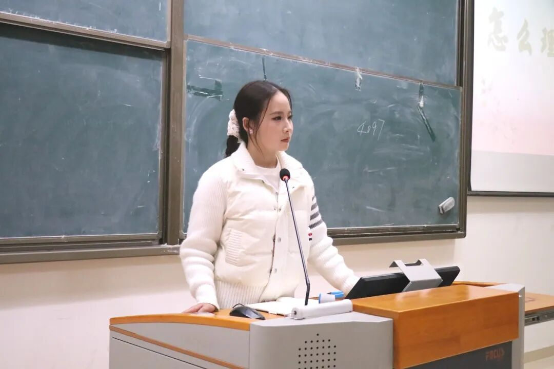 校学生会主席团成员于瀚颖在社交礼仪常识培训课程中,让学员们认识到遵循礼仪规范可在社交中传递情感、塑造形象、展现素质,赢得尊重与信任。通过学习,大家更加深刻地体会到,在与其他组织或部门沟通合作时,以礼待人能营造融洽氛围,提高工作效率和质量,更好服务同学。