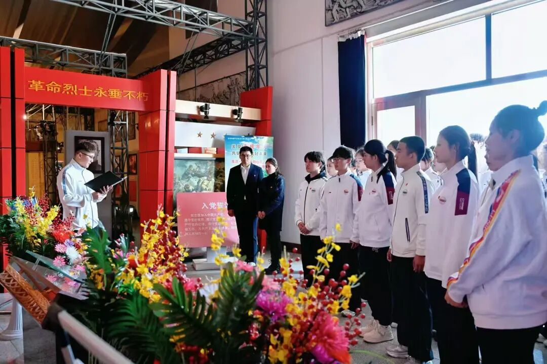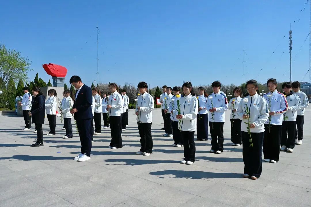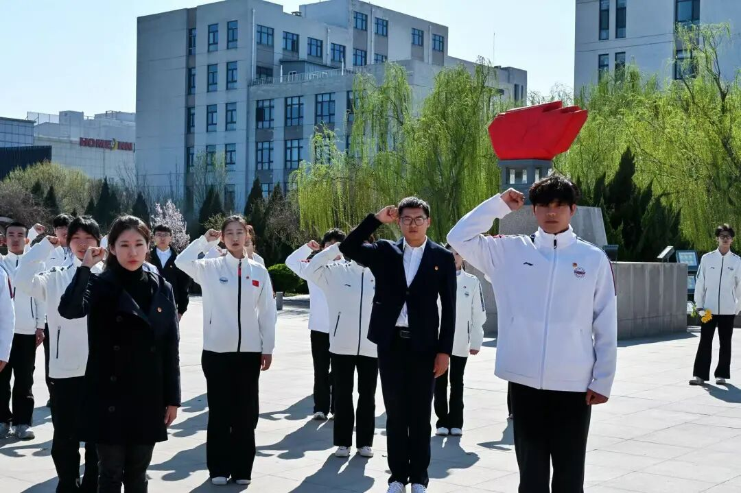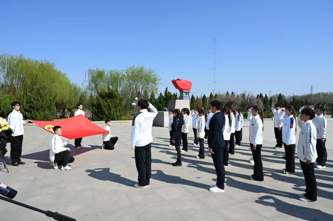 在领誓人的带领下,全体团员面向团旗,举起右拳,重温入团誓词。铮铮誓言,在陵园上空回荡,彰显着新时代体育青年继承先烈遗志、勇担时代使命的坚定信念。站在纪念碑前,同学们静心聆听那段烽火岁月,真切感受英烈们不畏牺牲、矢志报国的崇高精神。