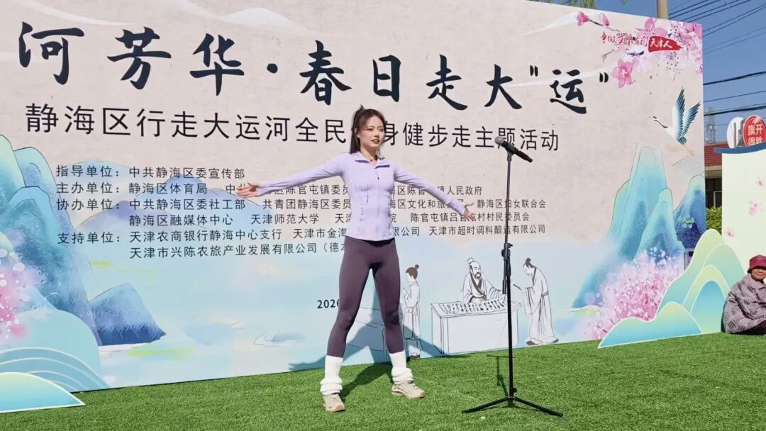 为深入贯彻习近平总书记关于大运河文化保护传承利用的重要指示精神,全面落实全民健身国家战略,4月11日,静海区陈官屯镇举办“运河芳华·春日走大‘运’”暨静海区行走大运河全民健身健步走主题活动。我校30名师生受邀参加开幕式表演,并开展志愿服务活动,以青春活力赋能基层文体事业发展,丰富群众精神文化生活,展现新时代大学生的责任与担当。