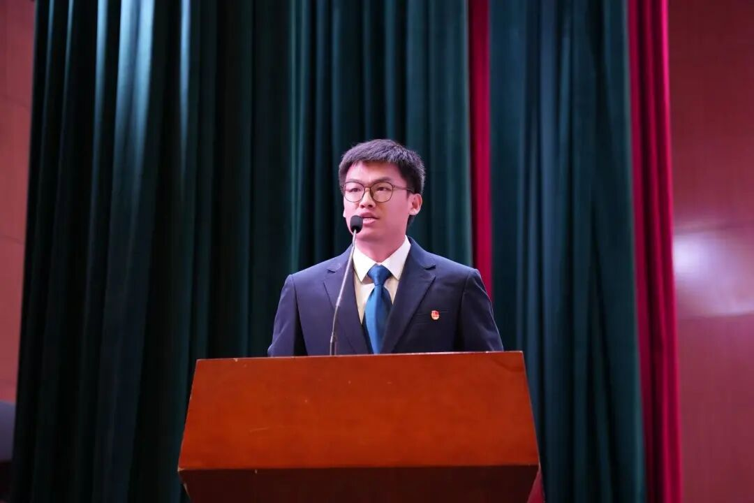 校团委干部程浩宣读新发展团员名单。2025年秋季学期,经团组织培养考察,我校共发展曹露周、张翼、陈艺琳等249名新团员加入中国共产主义青年团!