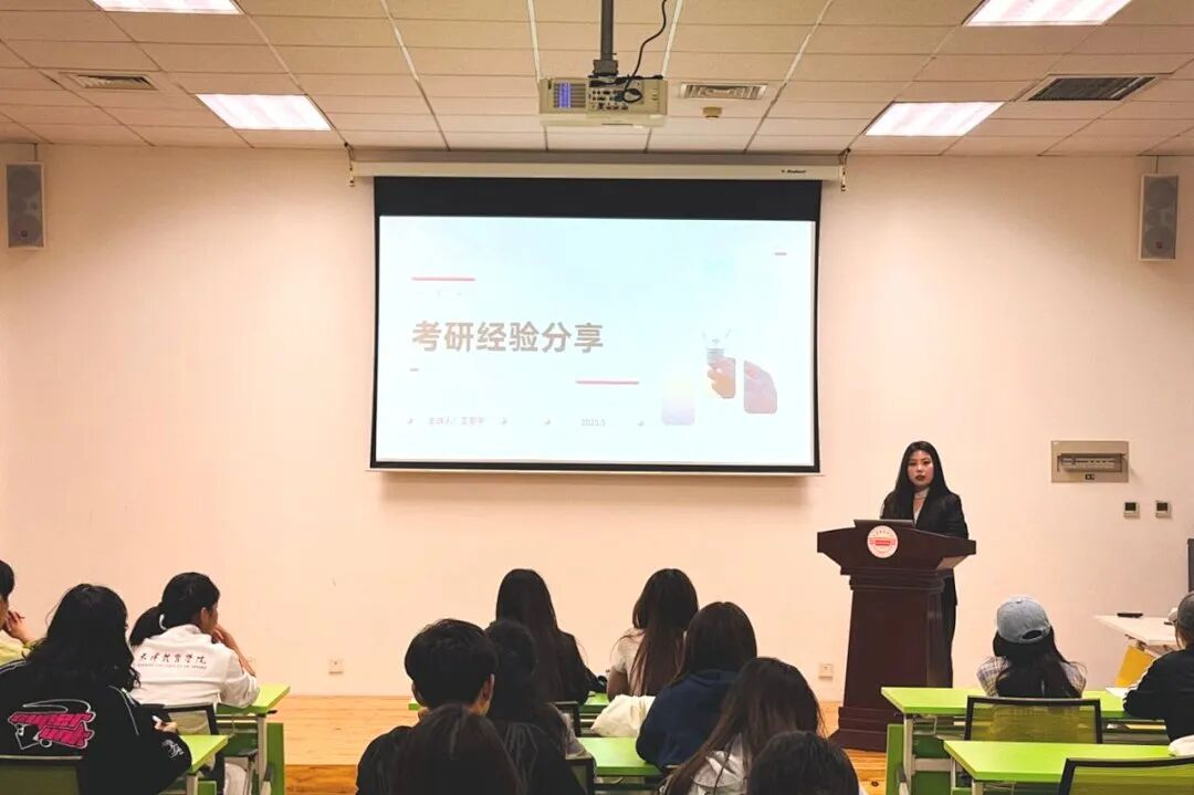 5月22日晚20:30,校团委学生组织第五期交流分享会在大学生活动中心410如期举行。本期分享会以“考研备战指南——高效复习与心态管理”为主题,邀请到校研究生会王若宇(2024级体育管理学专业,考研成绩434分)和张文秀(2024级运动人体科学专业,考研成绩411分)作为主讲人,与团学组织40余名成员共同探讨了考研备战的策略与心得。